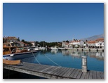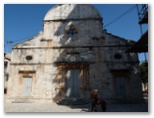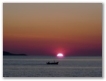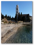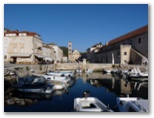 Le soir nous mangeons au restaurant "GOSTIONICA Junior ", en retrait du port, indiqué par le guide du routard 2009. Aux antipodes du luxe supposé de Hvar, familial et très bons calamars noirs grillés. L'ambiance est curieuse. La télé diffuse une version Croate de "Qui veut gagner des millions". Le serveur regarde les clients qui regardent la télé. Et nous on regarde les deux tout en trouvant parfois les bonnes réponses même si on n'y comprend rien, comme quoi :). Si vous voulez un resto typique et romantique ce n'est pas là qu'il faut aller. Par contre si vous aimez les ambiances décalées et les bons plats alors vous serez servi ! |