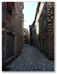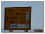 Sur le plan nous sommes à droite et avons toute l'île à traverser. La route est très sinueuse et pas toujours nickel, très Bosley dans "drôles de dames" :) .On passe d'un côté à l'autre de l'île avec de superbes vues sur les îles autour. Une halte s'impose à Starigrad inscrite sur les sites de l'Unesco