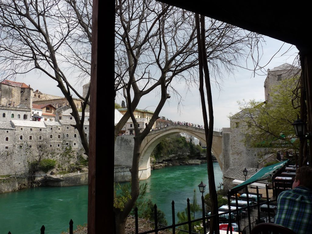 MOSTAR -- Le Vieux pont de MOSTAR reconstruit après la guerre, vu de notre restaurant arnaqueur