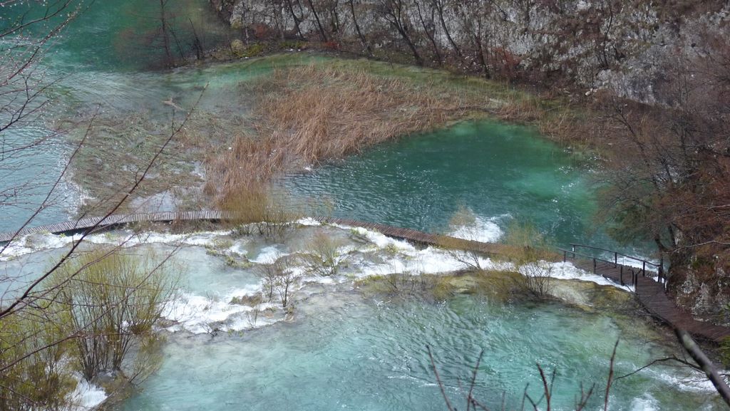 PLITVICE -- Les pontons paraissent bien fragiles vu d'ici !