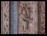Détail du portail : Les colonnes supportant les arcades sont soutenues par des juifs et des turcs comme pour symboliser leur condition inférieure à l'église de l'époque