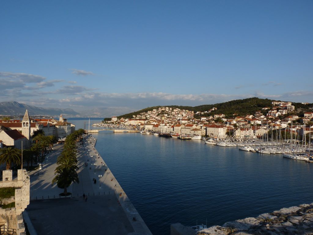 TROGIR -- La Riva de TROGIR et l'unique pont qui relie l'île de Ciovio (à droite sur la photo)