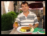 On mange la fameuse escalope viennoise. Malheureusement à l'éxtérieur d'un fabuleux restaurant. Il faut aller à l'intérieur pour découvrir le décor qui nous ramène au siècle dernier.