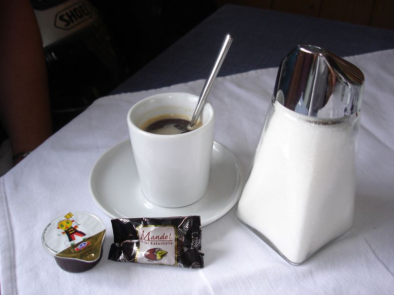 Photos favorites -- Le café toujours servi avec son petit pot de lait, ya même du chocolat aujourd'hui :)