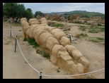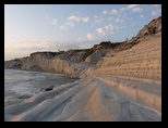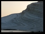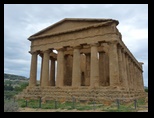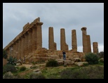 le Temple d'Hercule est le plus ancien temple de la vallée, sa construction remonte aux environs de 520 ans av JC. Il a dû être détruit par un tremblement de terre, huit colonnes sur les 38 ont été relevées en 1920, elles sont hautes de 10 m et ont un diamètre de 2.08 m. On vénérait à l'intérieur une statue en bronze d'Hercule. Le Temple de la Concorde (milieu du v° siècle av. J.-C.) est l'un des plus beaux et des mieux conservés du monde grec. Ses lignes sont d'une grande pureté et sa pierre prend au soleil couchant une couleur ocre rouge comme si tout le monument s'embrasait. Ce temple doit son état exceptionnel de conservation au fait qu'il fut transformé, au Moyen-Age, en église chrétienne. Temple de Héra Lacinia (Junon), Il fut construit aux environs de 450-440 av.J.C. Le Temple de Castor et Pollux appelé aussi Temple des Dioscures, les jumeaux nés de l'union de Jupiter et Léda. Ce temple est le plus représentatif de la ville artistique d'Agrigente. Date du V° s. av J.-C Très difficile de trouver l'accès de Scala dei Turchi pour descendre à la plage. Il n'y a aucun panneau, surtout hors saison. De ce coté l'échelle des Turcs forme des courbes étroites et sinueuses façonnées par le vent et l'eau. Ce surnom leur est donné d'une croyance populaire selon laquelle des sarrasins auraient escaladé ces rochers, cachant leurs bateaux dans les criques. Retour à l'hôtel de nuit avec un vent très violent et de la pluie pour changer :(