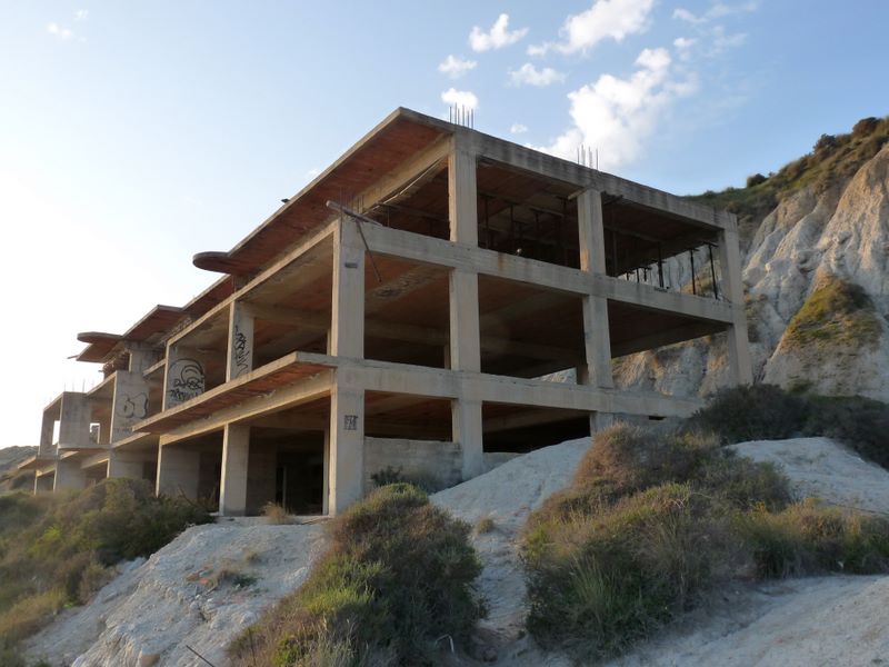 AGRIGENTE_SCALA_DEI_TURCHI -- SCALA DEI TURCHI (escalier des Turcs), beaucoup d'habitations jamais finies ou interdites