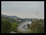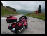 Pas facile de repartir de Enna, les gros pavés sont glissants et il y beaucoup de monde, à pied et en voiture. On repart par la route du chateau dans un brouillard si épais qu'on ne voit pas à 10 m. Je me sers du gsp pour voir les virages. Bien sur il pleut , il fait nuit et froid. C'est cool la moto !