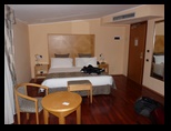 On arrive à 21h25 à l'hôtel . Ils ne servent que jusqu'à 21h30 ! autant dire que c'était juste, d'autant plus qu'on est quasiment les seuls dans le restau . Pour un hôtel censé être complet ?! On voulait qu'ils nous changent notre chambre non fumeur mais qui puait la cigarette et ils n'ont pas voulu pretextant le remplissage de l'hôtel. On a eu juste une bombe de déodorant. Au prix de l'hôtel (130€ prix normal, 95€ avec booking) c'est vraiment dommage d'être obligé de dormir avec la fenêtre ouverte à cause de l'odeur. Heureusement la literie était bonne , la chambre et la douche spacieuse avec une vue imprenable sur le circuit automobile qui fait le tour du lac. Les employés parlaient anglais et étaient sympa (celui du restau du soir avait l'air de tirer la tronche ). Bon repas avec Clint Eastwood en italien et ses trois longues coupures de pub pendant le film, Bon pti dej le matin suivant.