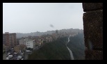 On part à Enna vers 15h30 ayant attendu que la pluie veuille bien se calmer, en vain. On monte à la ville par la route du Castello di Lombardia avec ses virages serrés et qui a l'avantage de pouvoir accéder à Enna sans passer par le centre et ses rues bouclées à la circulation pour le défilé des confréries. on visite le chateau avec sa vue panoramique , toujours sous la pluie. On achète même des parapuies :(