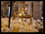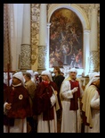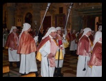 On est mal renseignés sur les horaires qui nous disaient que les processions commencaient à 17H; En fait on arrive au Duomo à cette même heure par la porte latérale juste quand la procession apportant le corps du Christ défunt entre par la porte principale. Ensuite c'est au tour de l'arrivée de la vierge aux sept douleurs.
