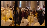S'ensuit une très longue attente de 3 heures . A un moment il y a un semblant de messe dans l'indifference générale; Tout semble désorganisé, les processions sont mélangées. Tout le monde discute. Il n'y a que des garçons habillés de capes de toutes couleurs (avec caché dessous un kway :) ). Je n'ai vu qu'une femme agée habillé en tenue de procession. Les plus jeunes ont moins de dix ans. Il y a un tout petit habillé dans les bras de son père. Beaucoup de touristes, le Duomo est comme une ruche. Dehors il pleut et il fait froid. Il faut dire aussi que Enna est le plus haut chef lieu de Sicile avec une altitude de 948 m.