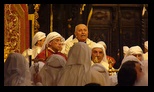 La Vierge à son tour sort du Duomo portés par une confrérie . Il remettent leur cagoule avant d'entrer dans une longue nuit.
