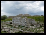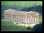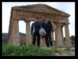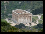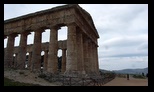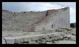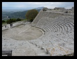 Un tout petit peu d'autoroute avec beaucoup de vent et nous sommes sur le site de SEGESTE. L'entrée est à 6€ plus 1,50€ pour le bus qui nous amène au théatre (indispensable vu la montée très raide de deux km, sans ombre mais là ce n'est pas génant il pleut :( ) . Le théatre a été édifié au 3°s.av J.C sous l'occupation romaine. Il est constitué d'un vaste hémicycle parfait de 63 m de diamètre taillé dans un versant rocheux . Les gradins sont orientés vers les collines, au delà desquelles on distingue le golfe de Castellammare.