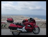 Les lignes continues, vitesses limitées, voitures en face ne les empechent pas de doubler. C'est une véritable compétition pour être devant la voiture de l'autre , roulant au ras du pare-choc pour déboiter sans clignotant (ca sert à quoi ce bouton) .Le bruit du klaxon est omniprésent et ce sera comme ca partout en Sicile. Du coup , ca me tape sur le système et je klaxonne pour le plaisir , sans raison au grand étonnement des Siciliens :) Une nana en panda verte me collera en ville sur plusieurs km pour me doubler, une véritable obssession ! ce qui est le plus difficile en Sicile en moto est de surveiller ses arrières. A cause de la largeur de ma moto, je ne les vois pas arriver et ils doublent pour rien, pour une place, pour 30 m. Des tarés que je gratte sans problème sur la moindre ligne droite. Les nationales sont limitées à 110km/h et ils roulent au minimum à 130 alors que la chaussée est moins bonne et signalée que dans notre pays.