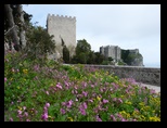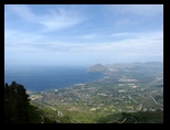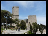 Nous partons ensuite pour Trapani afin de prendre le funiculaire qui amène à Erice. C'est hélas fermé à cause du vent très fort. On prend donc la route qui part du funiculaire. C'est une montée excellente avec une super vue sur Trapani et la mer.