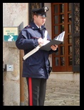 On commence la journée dans la bonne humeur en prenant notre petit déjeuner à l'hôtel Locanda Scirocco. Le serveur demande à une cliente ce qu'elle désire boire elle et son mari. Celle ci répond "tea for two". Dans l'hilarité générale l'employé de l'hôtel se met à chanter " tea for two, tù for ti , you and me, me and you ...sur l'air de la scène de la grande vadrouille avec De Funès et Bourvil aux bains turcs." . Ca met en forme pour la journée :)