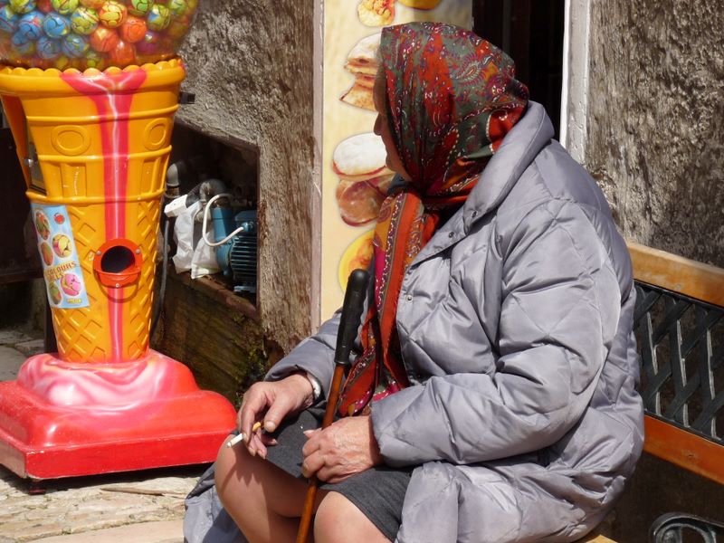 ERICE -- Une grand mère Sicilienne qui fume !