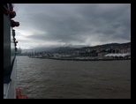 Après une traversée sans histoire ,dans le froid et le vent, nous arrivons au port de Gènes. Le soleil qui venait d'apparaitre nous laissant de l'espoir laisse sa place à la pluie à l'instant précis ou nous arrivons dans le port :(