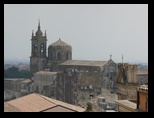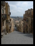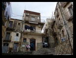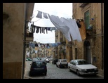 Vu l'heure, près de 14H, on s'arrète à Caltagirone pour manger et visiter un peu. C'est une ville à flanc de montagne. On dirait qu'elle est à l'abandon. Les façades sont grises, sales, délabrées. Le linge pend partout aux fenêtres traversant la rue. C'est tous les jours le jour de lessive en Sicile :) Avec le vent fort et permanent qu'on a en ce moment ca sèche vite !